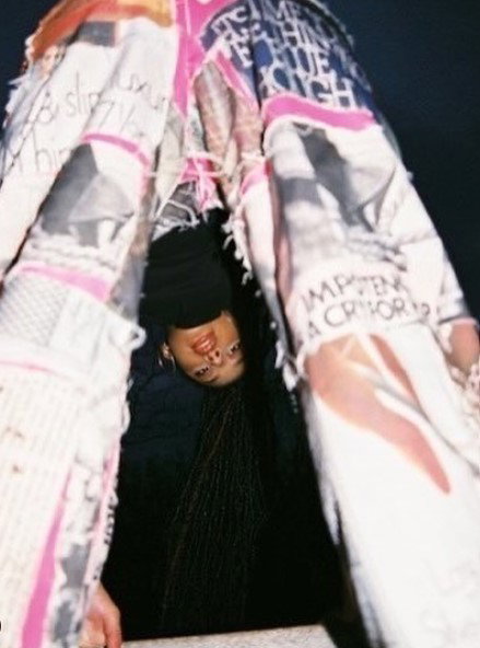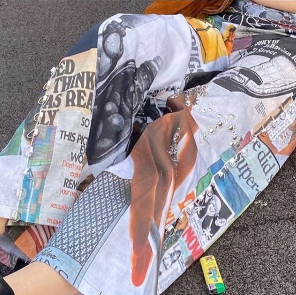 I have always been a creatively driven person and from a young age wanted to have my own clothing brand. My art teachers used to tell me that I have a thousand ideas per minute and they could never keep up with me. In that time period (during my A-levels), I was drawn to so much such as media/magazines,photography, Art, writing and textiles. It naturally clicked at one point without too much thought that I should combine it all together through a fashion brand. I started mixing different mediums together and express these different aspects of myself through the fabric. I firstly began recycling old magazines from the 60s that fascinated me in media studies, and then later began printing my own graphics, photography and words that turned the fabric and later garment into my own magazine of expression.
